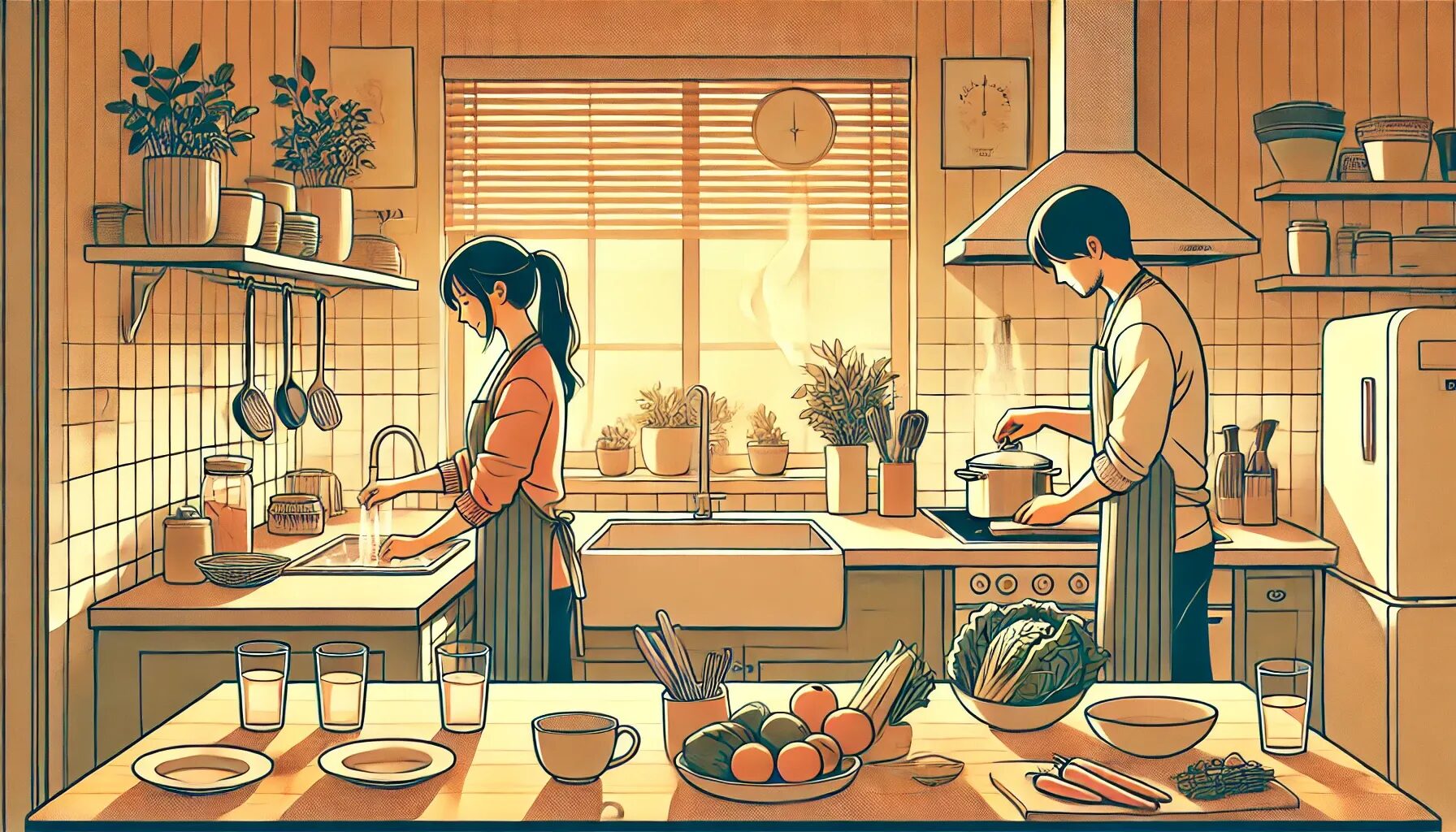 - **”Reducing Burden Through External Resources”**More households are using external services to reduce the housework load. For example, using housekeeping services and meal kit deliveries allows couples to allocate their time to other important matters. Many households are also introducing smart appliances like robot vacuums and dishwashers to handle chores efficiently. These tools and services help reduce the burden on couples and facilitate an equal partnership.